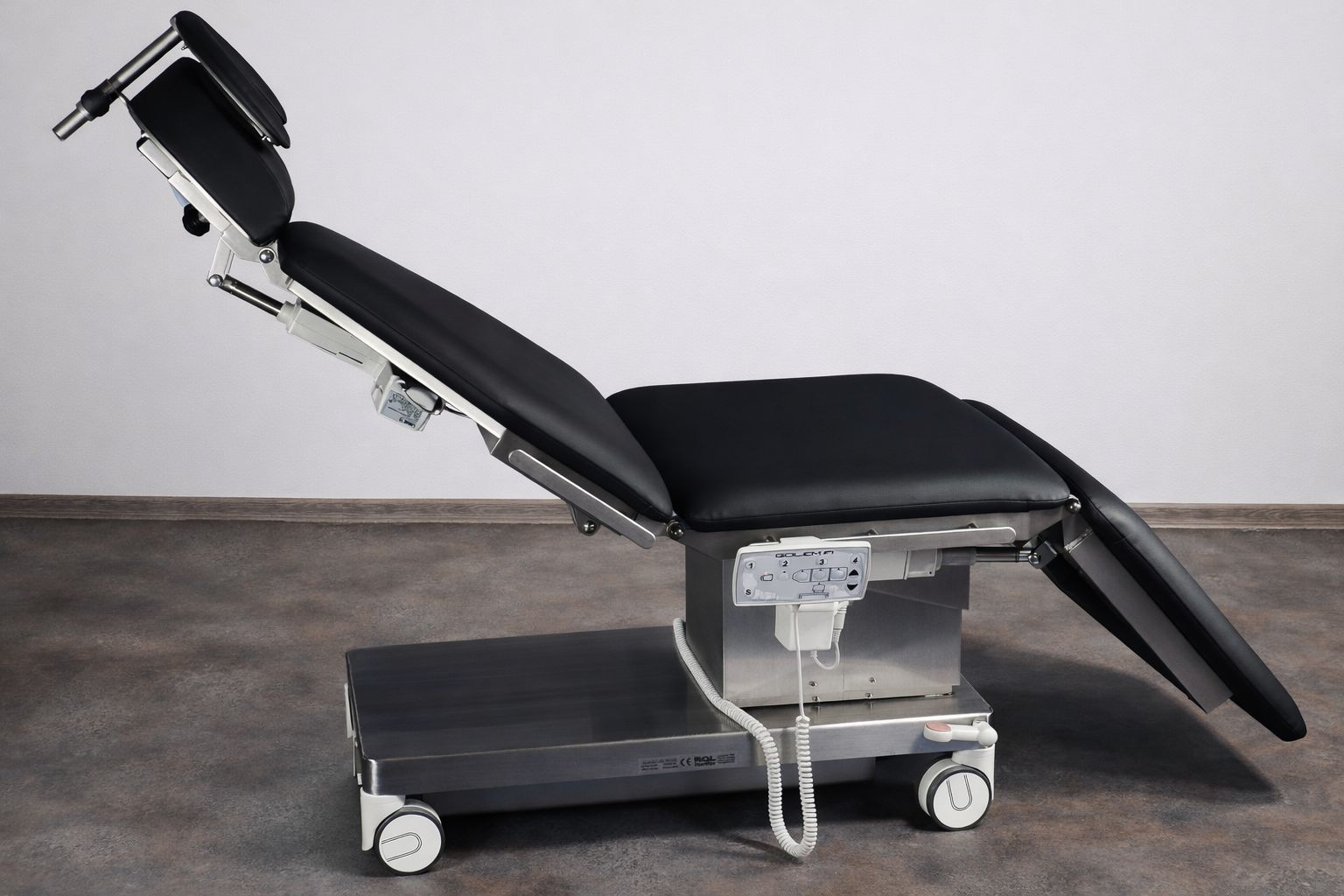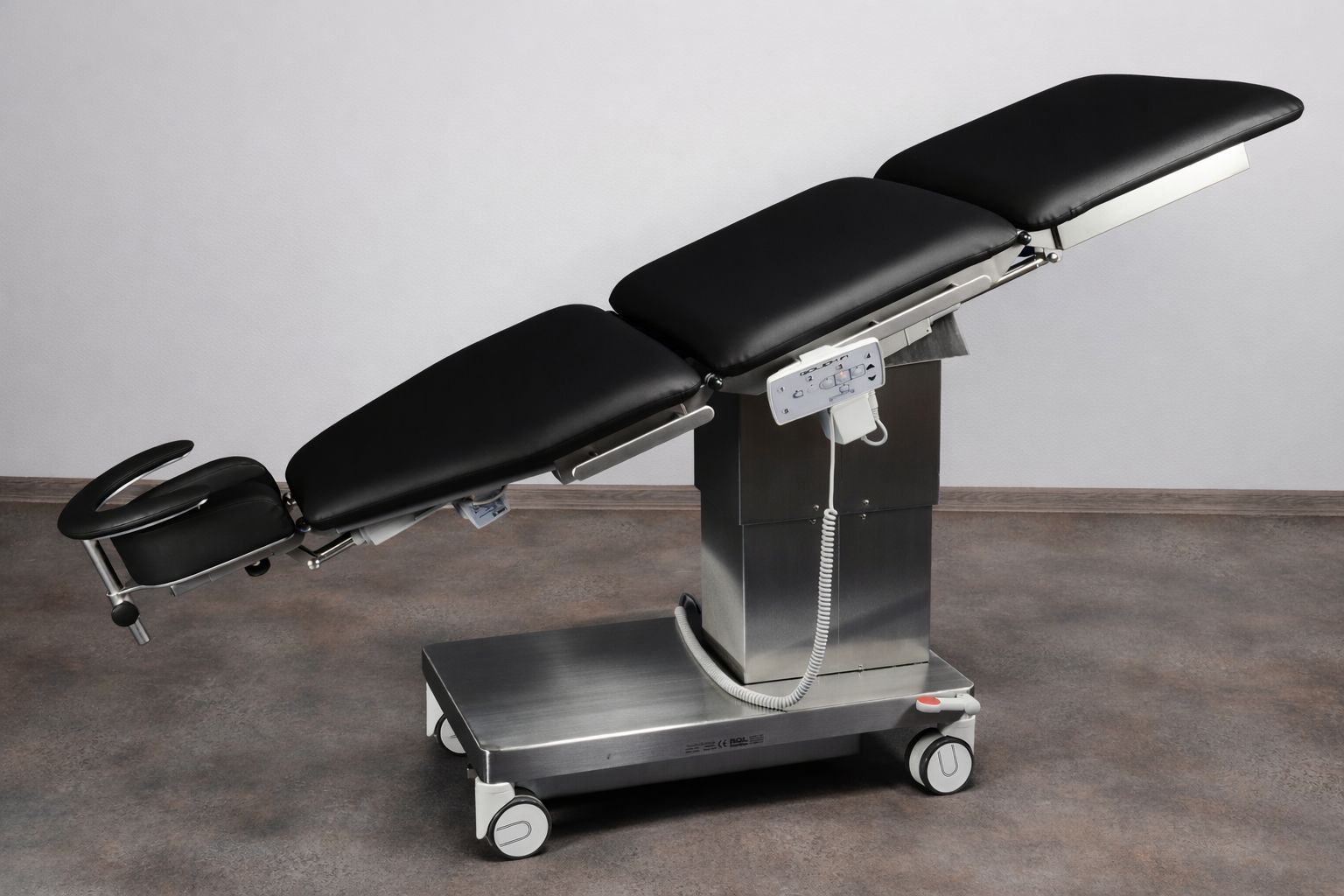 Standardní provedení stolu je pojízdné s centrálně bržděnými kolečky Ø 100 mm. Napájení stolu je ze standardní zásuvky, ale je stůl vybaven i vestavěnou plněautomatickou nabíječkou a bezúdržbovými akumulátory pro případ výpadku napájení.