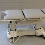 Stůl je plně vybaven: polyuretanové šauty nebo patní opěry (podle Vašeho přání) s kloubovým úchytem a upevněním na EUROlišty podél sedáku (tyto jsou součástí standardní výbavy), snímatelná madla pro pacienta s upevněním na EUROlištu podél sedáku, opěra pro nohu lékaře, nerezová miska, držák papírové role. Všechny prvky lze jednoduše a pohodlně nastavit pro pohodlí pacienta i personálu.